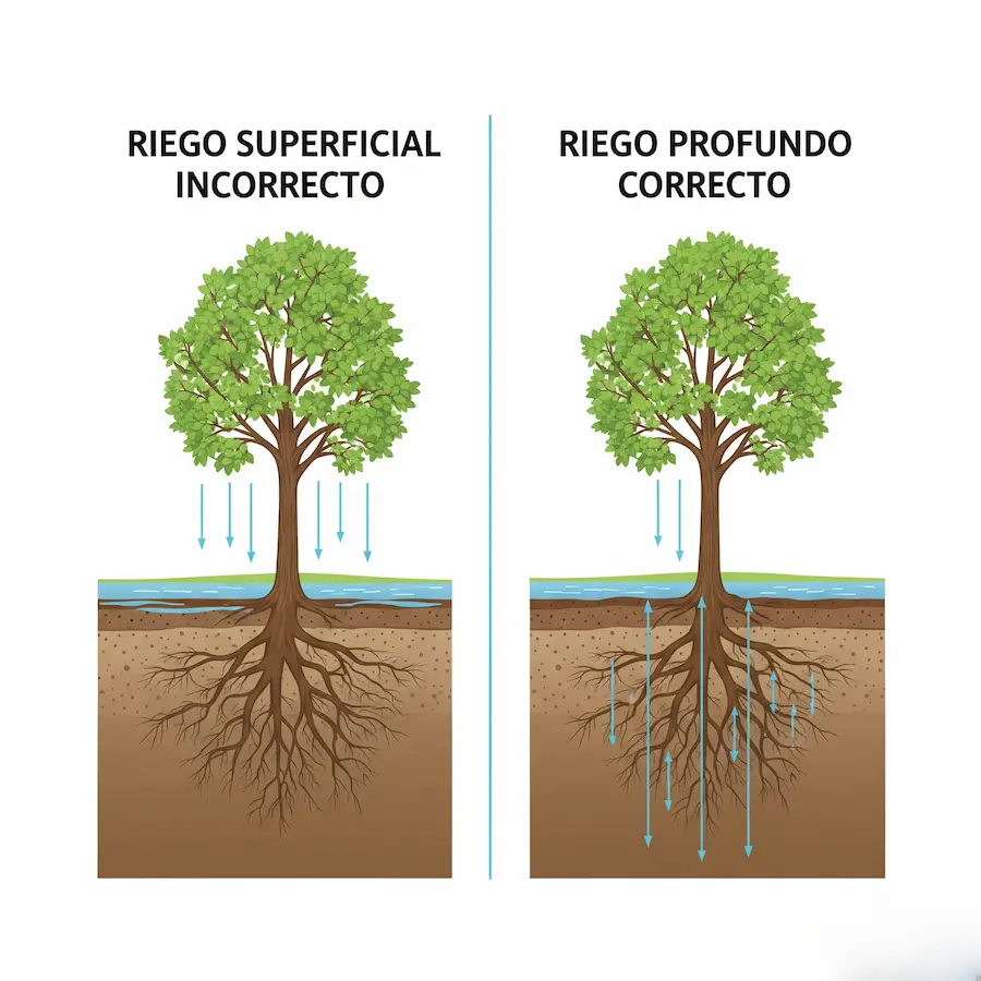 • El Truco del Experto: Es mejor un riego abundante y espaciado que muchos riegos superficiales. El objetivo es que el agua llegue a las raíces más profundas. Antes de regar, comprueba la humedad del suelo a unos 10 cm de profundidad. Si está húmedo, espera.